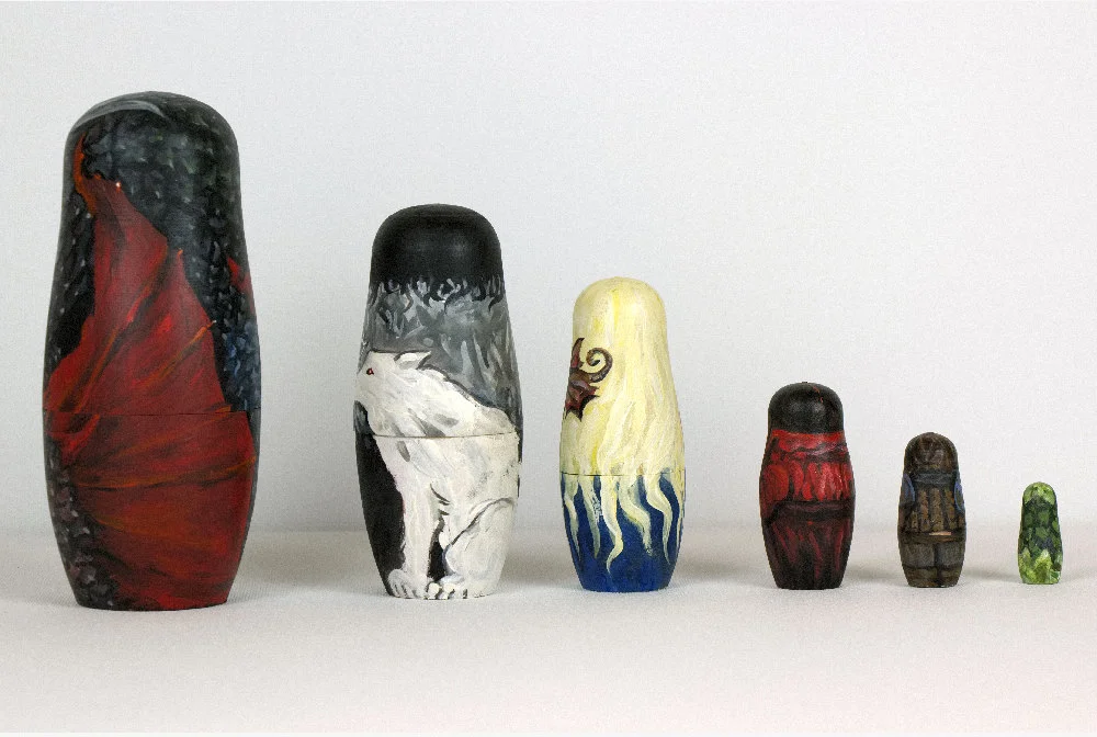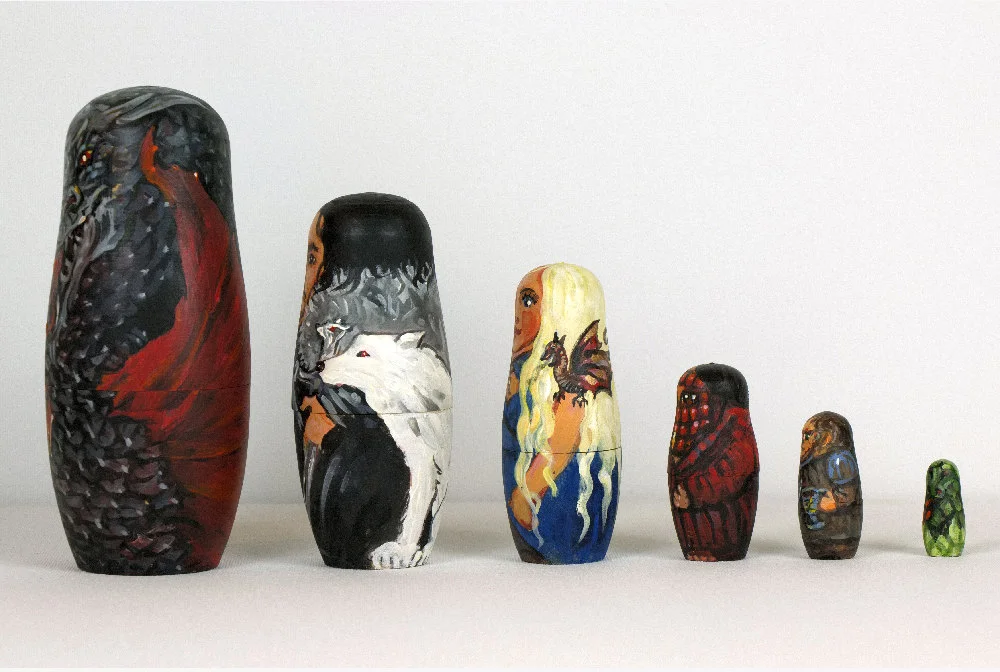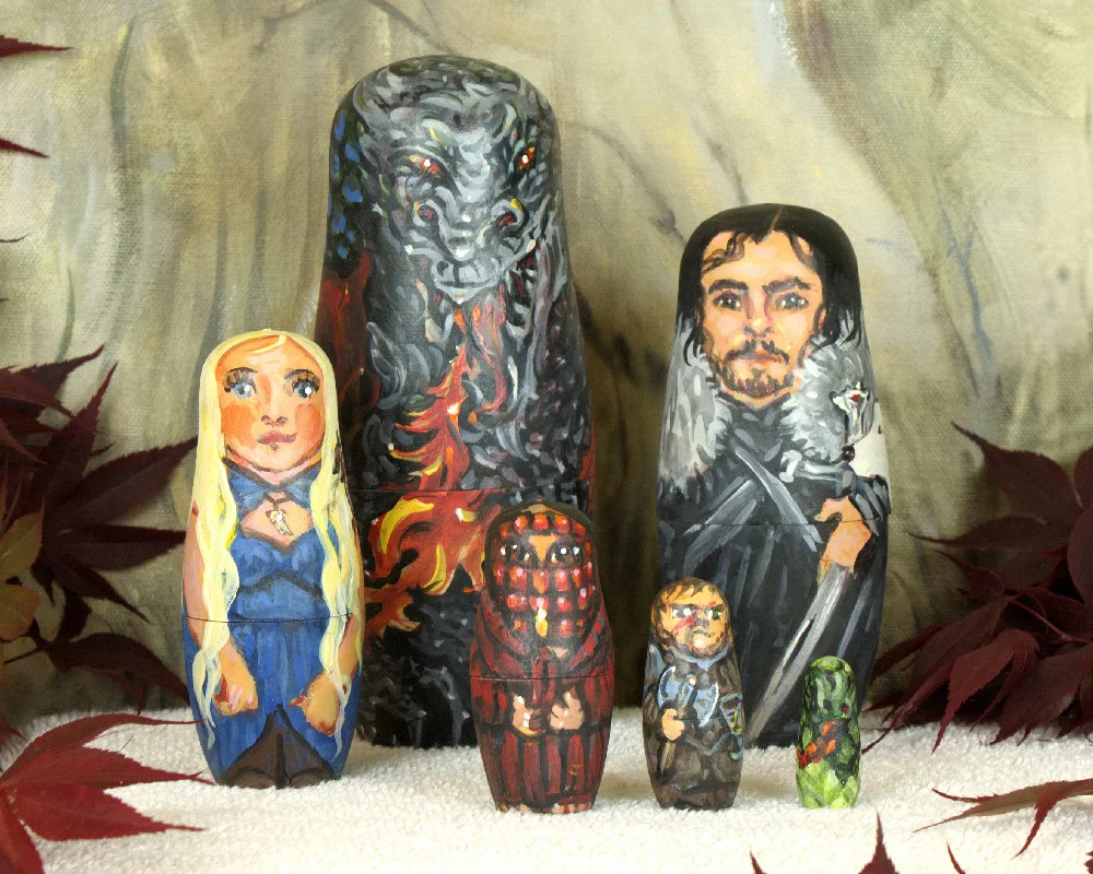 Game of Thrones handmade, Game of Thrones nesting dolls, A Song of Ice and Fire fan art, Daenerys, Jon Snow, Tyrion. Matryoshka figurines.