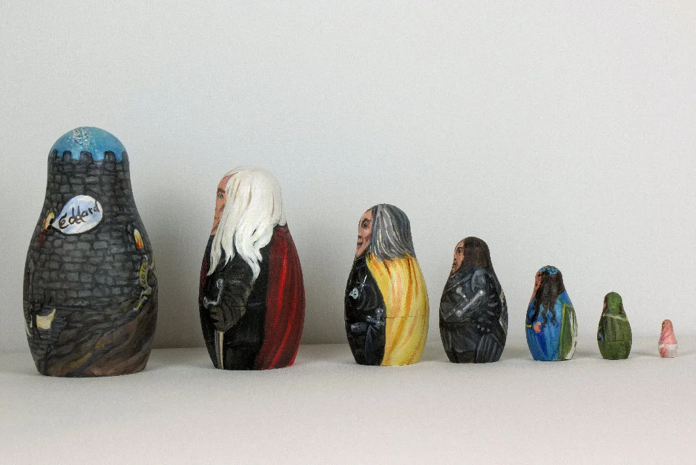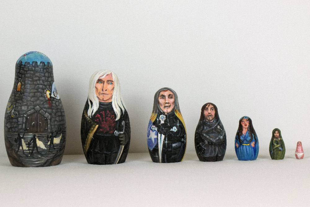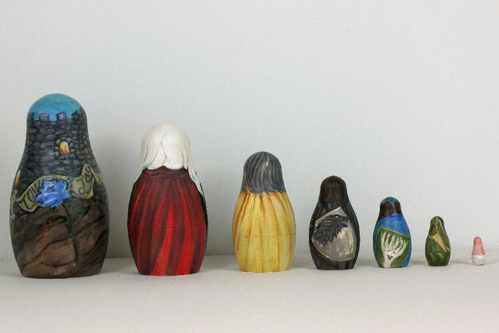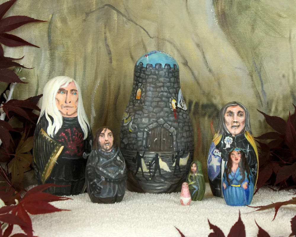 Game of Thrones nesting dolls, A Song of Ice and Fire fan art, Matryoshka figurines. Ned Stark at theTower of Joy.