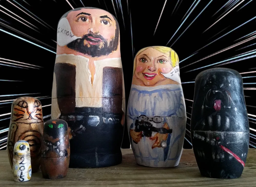 Star Wars theme wedding cake toppers. hand-painted nesting dolls, Matryoshka figurines, fan art.